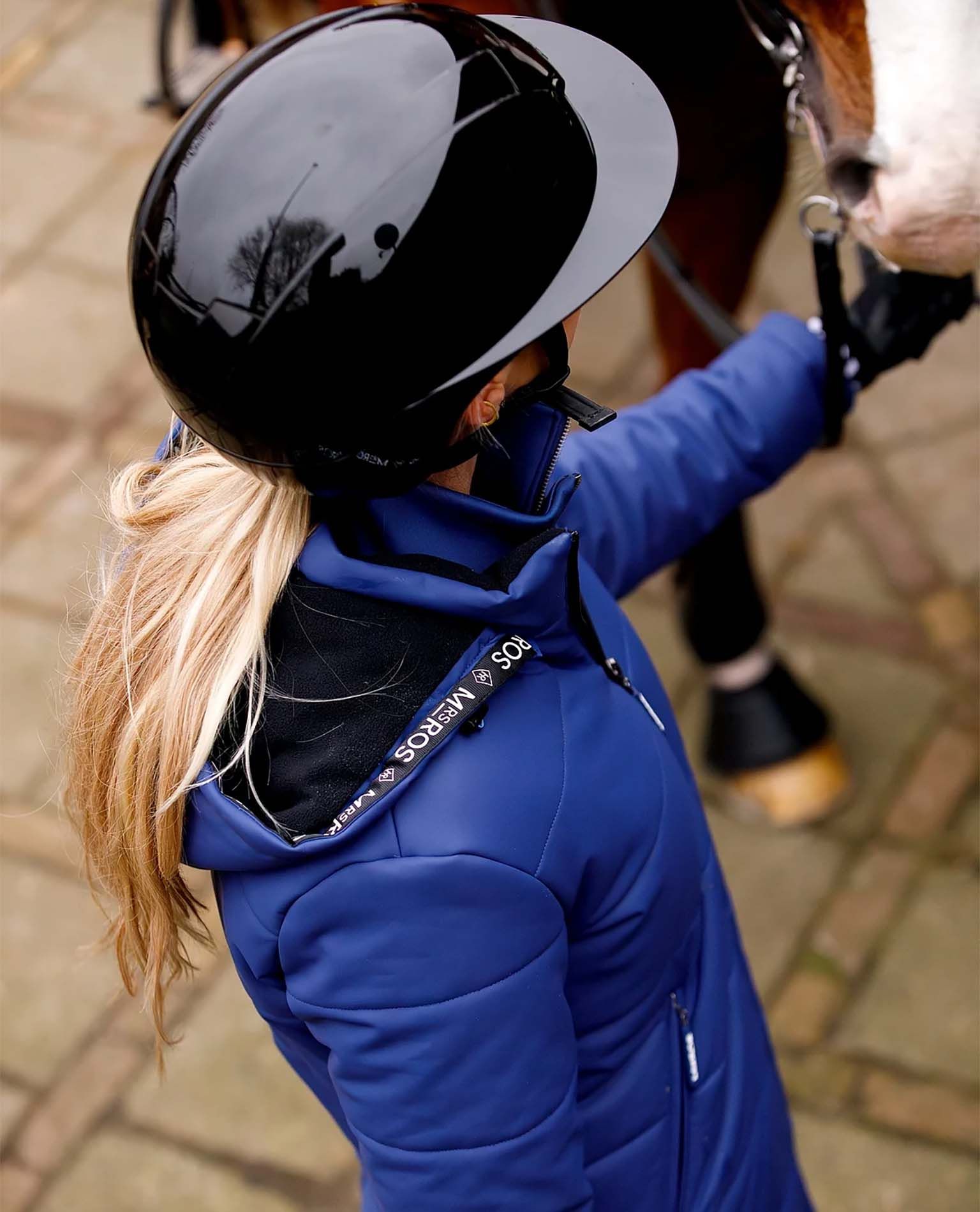 A timelessly stylish long jacket designed for active outdoor activities and riding. The lightweight, water-repellent surface protects against wind and rain without being sweaty. This navy blue jacket is the perfect choice for both stables and leisure - a true wardrobe staple.